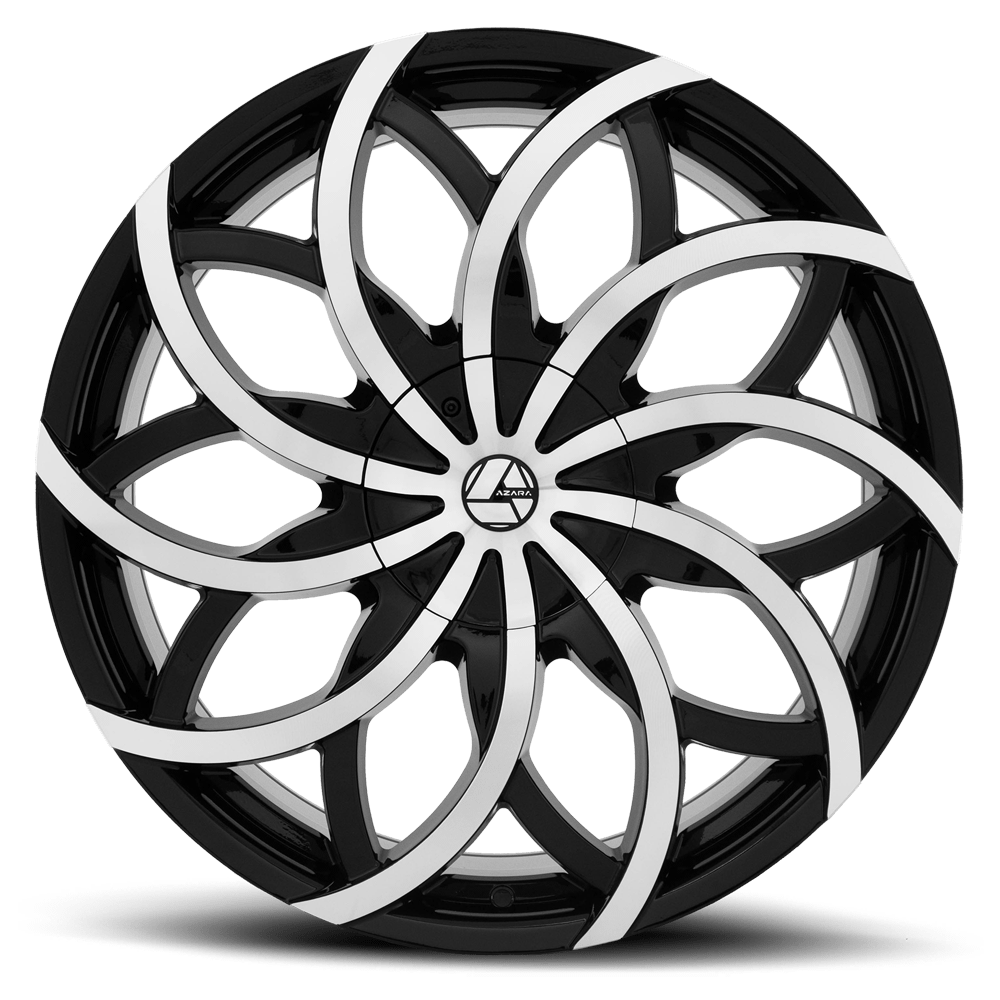 The AZA-504 is an artistic, multi-spoke style, characterized by spokes that reach to the lip and an additional set that run in the opposite direction, creating a mesmerizing effect when in motion. This wheel can be had in gloss black machined or chrome finish and in sizes from 20×8.5 to 30×9.5.