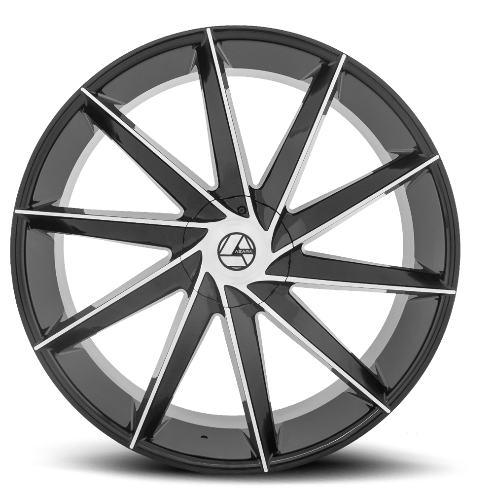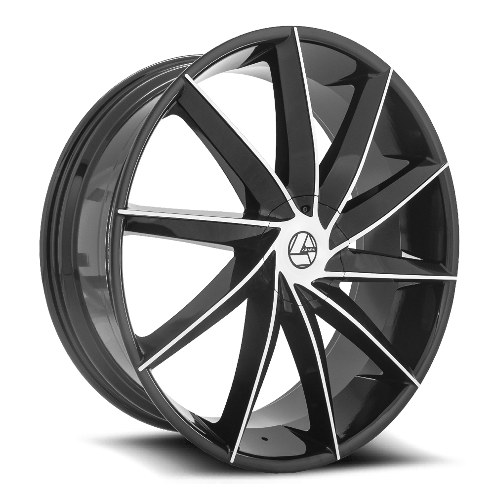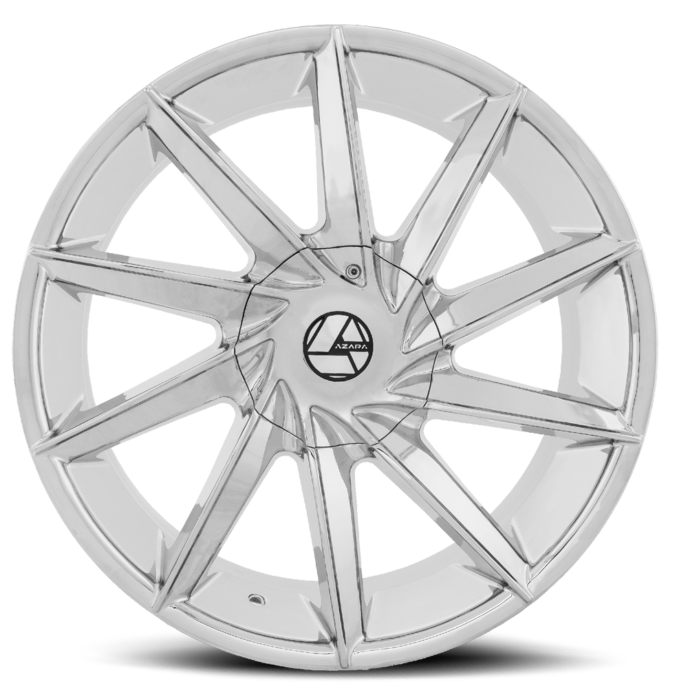 The AZA-506 presents a directional, 10 spoke style, with spokes that extend to the lip, offering a unique aesthetic appeal. Finished in either gloss black machined or chrome, this wheel comes in sizes from 18×8 to 30×9.5.