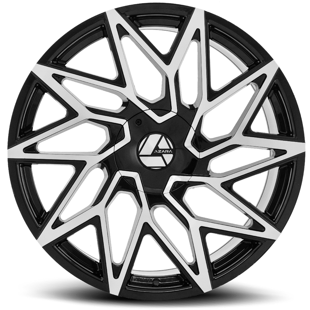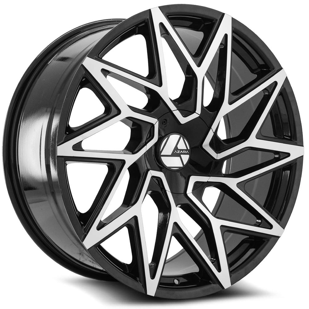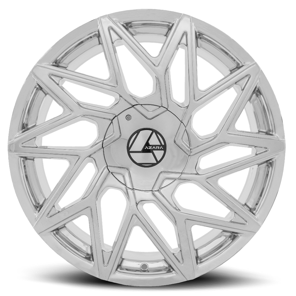 The AZA-511 is a high-quality aftermarket wheel boasting a directional, 10-spoke style where the spokes elegantly extend to the lip. This striking design is offered in either a gloss black machined finish or chrome, with available sizes ranging from 20×8.5 to 24×9.