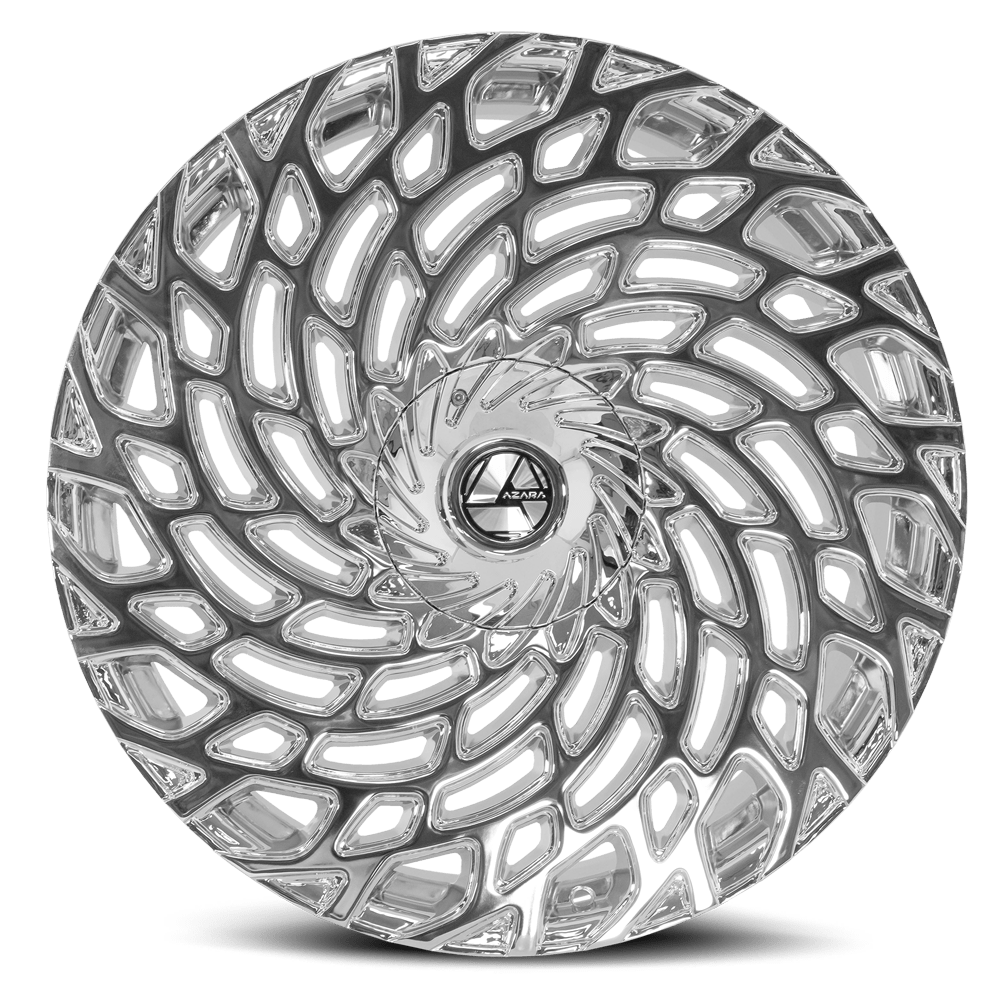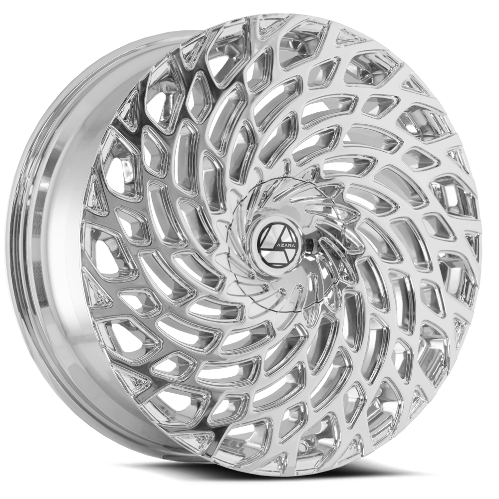 The AZA-523 offers a twisting, full-face, multi-spoke style with the spokes extending to the lip. These designs, available in gloss black machined or chrome finishes, offer sizes ranging from 20×8.5 to 30×9.5, providing ample options for those looking for a unique aesthetic to enhance their vehicle’s appearance.